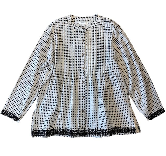 小さなダイヤ柄をプリントしたスラブ生地を使用したブラウスです。