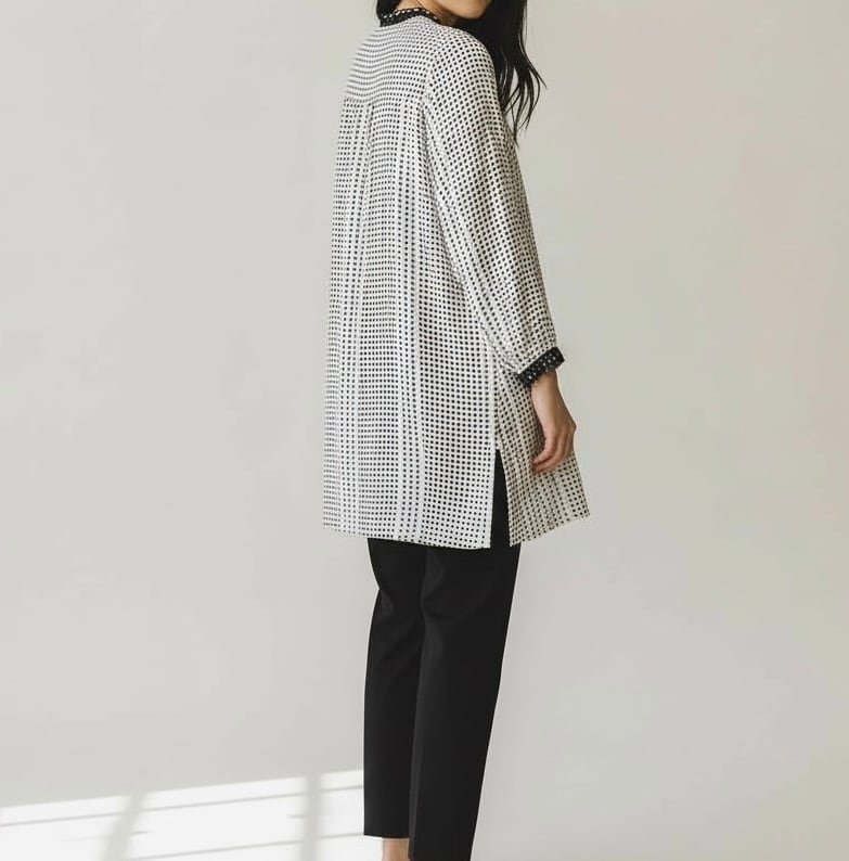 ダイヤ柄スタンドカラーロング丈ブラウスTIB-5504-FI