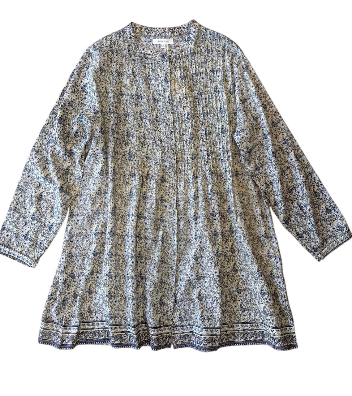 エキゾチックな雰囲気の小花プリントのコットンシルク生地のブラウスです。