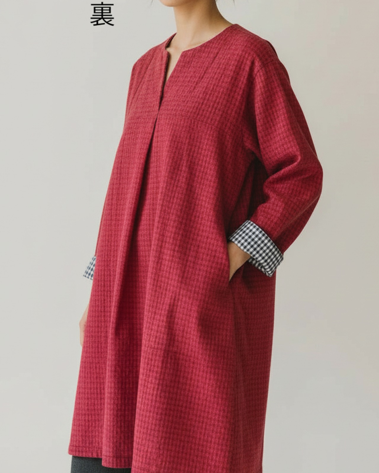 表面は細かい幾何学織、裏面にはやさしいギンガムチェック。