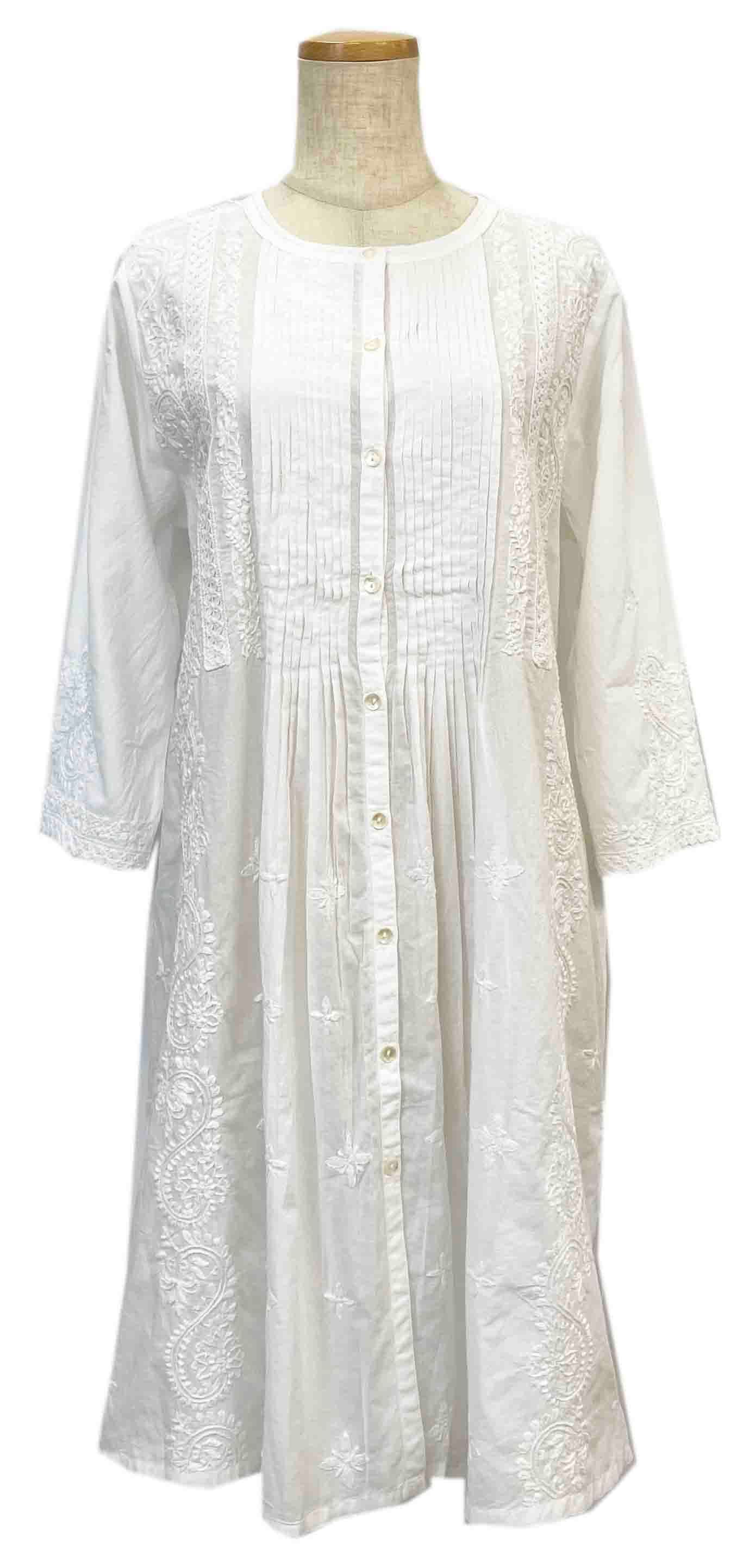 ラクノウ刺繍ブラウス ロング丈 インド綿100% 手刺繍 LKB-006