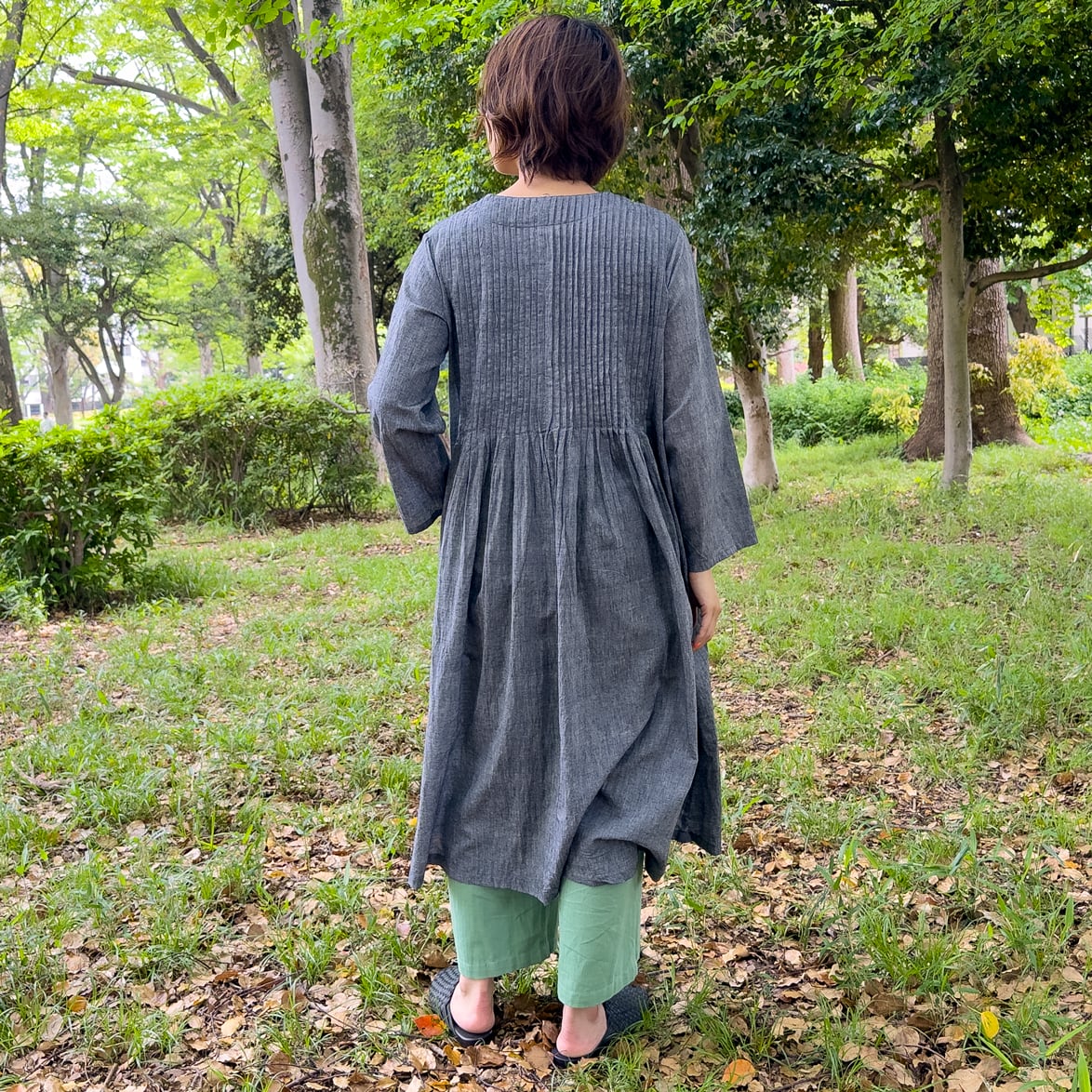 前後にタックをあしらった、涼し気なインド綿のワンピース・ドレスです。