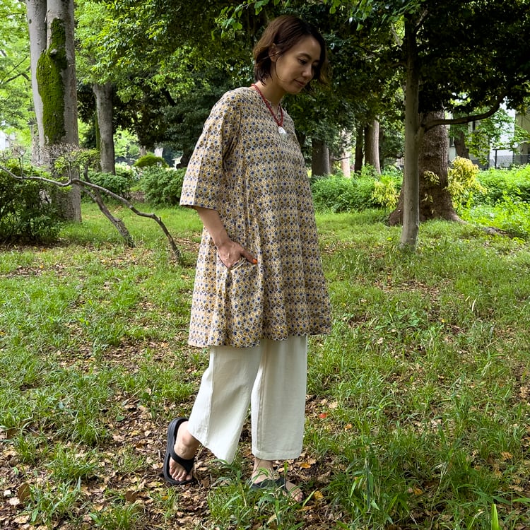 インド伝統工芸のハンドブロックプリントをあしらった、ゆったりとしたチュニックです。