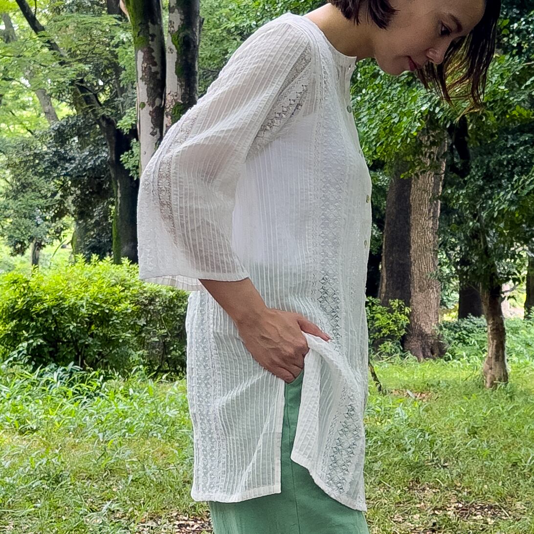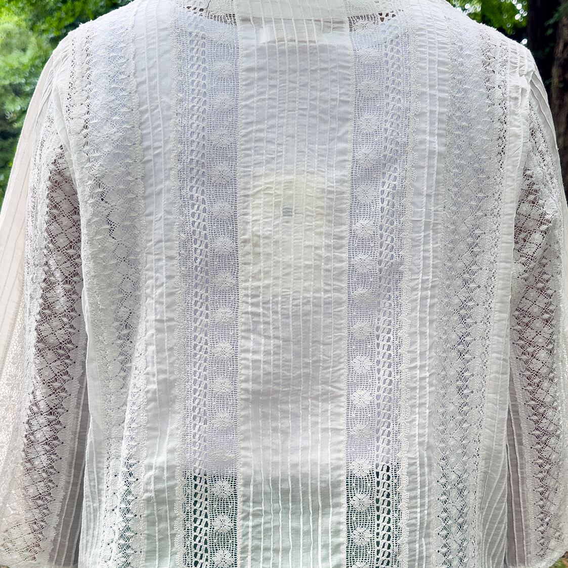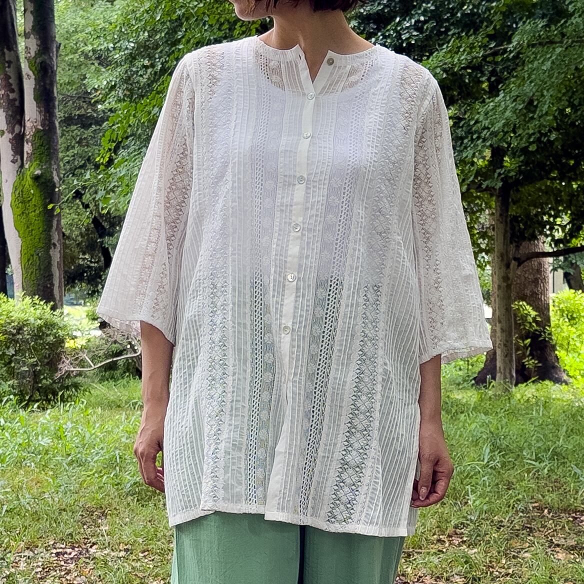レース&ピンタックブラウス 綿レーヨン S-24009-FI