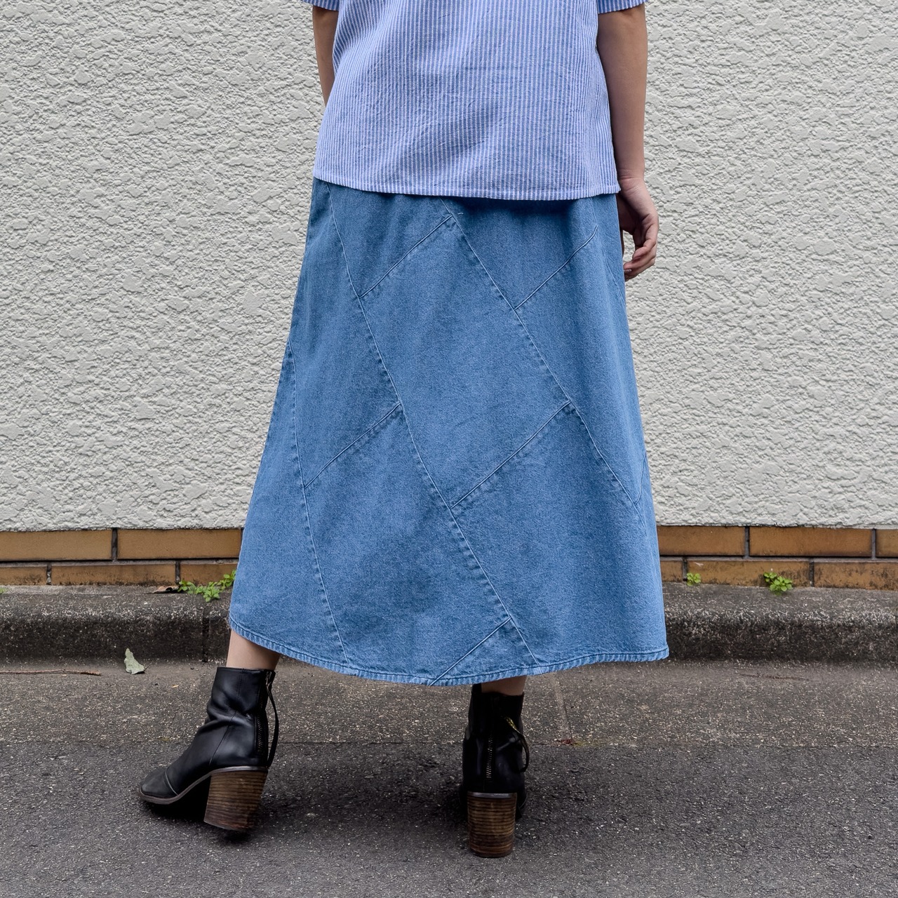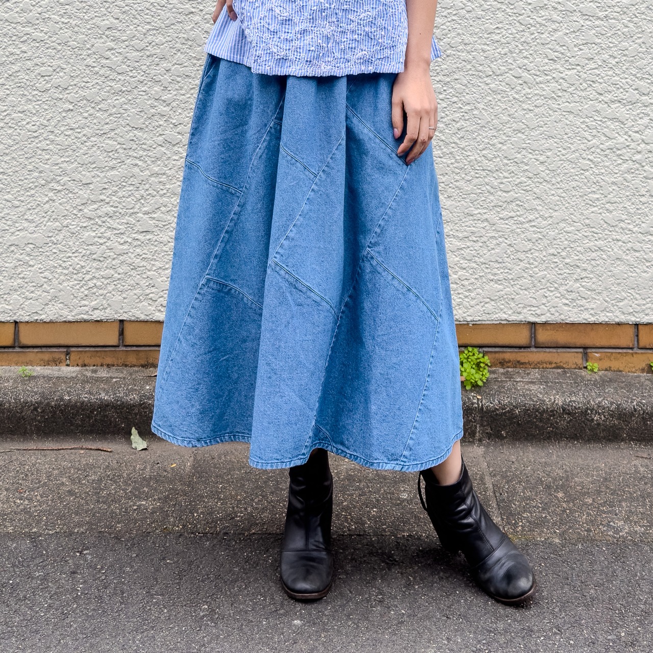 エスカルゴ風切り替えの着回しコーデしやすい、デニムのスカートです。
