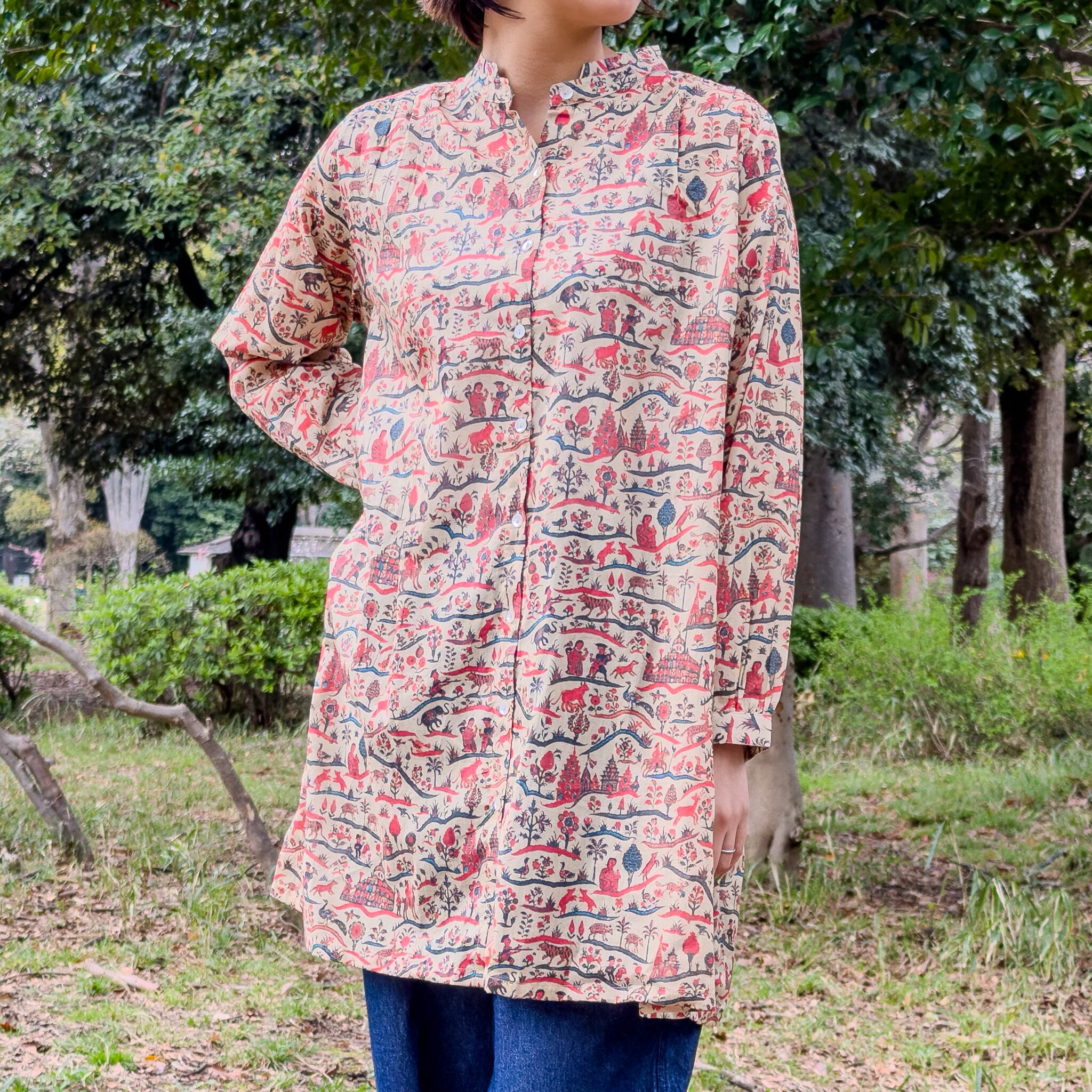 インド物語調プリントブラウス 綿100% OIB-4027-RT