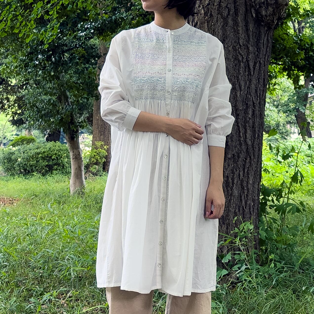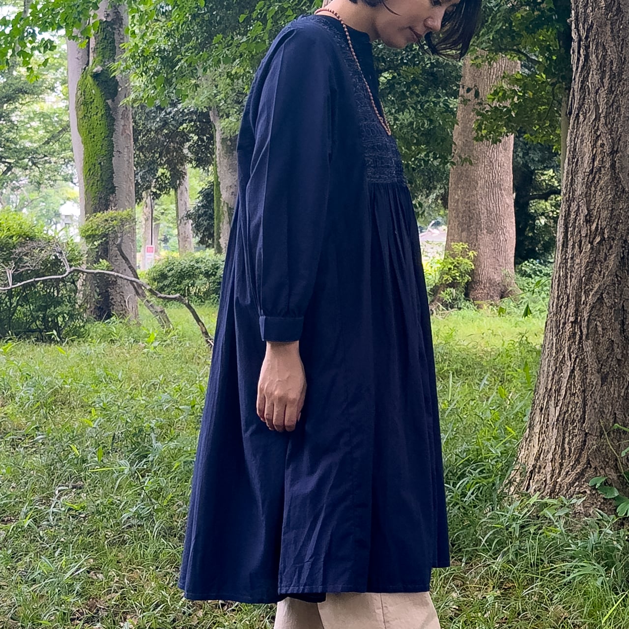 胸元にきれいなパターンの刺繍をあしらったワンピースです。